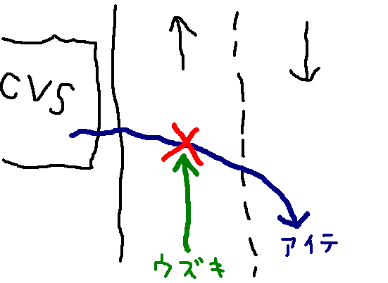 こっちが直進で、相手が出てきたとこで、出会い頭。
