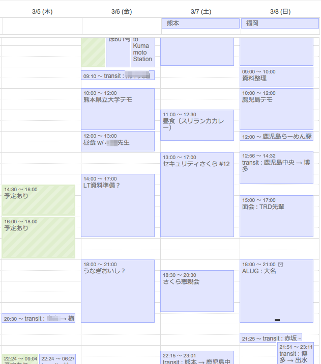 このうち、木〜土をGoogleカレンダーで見てみよう。