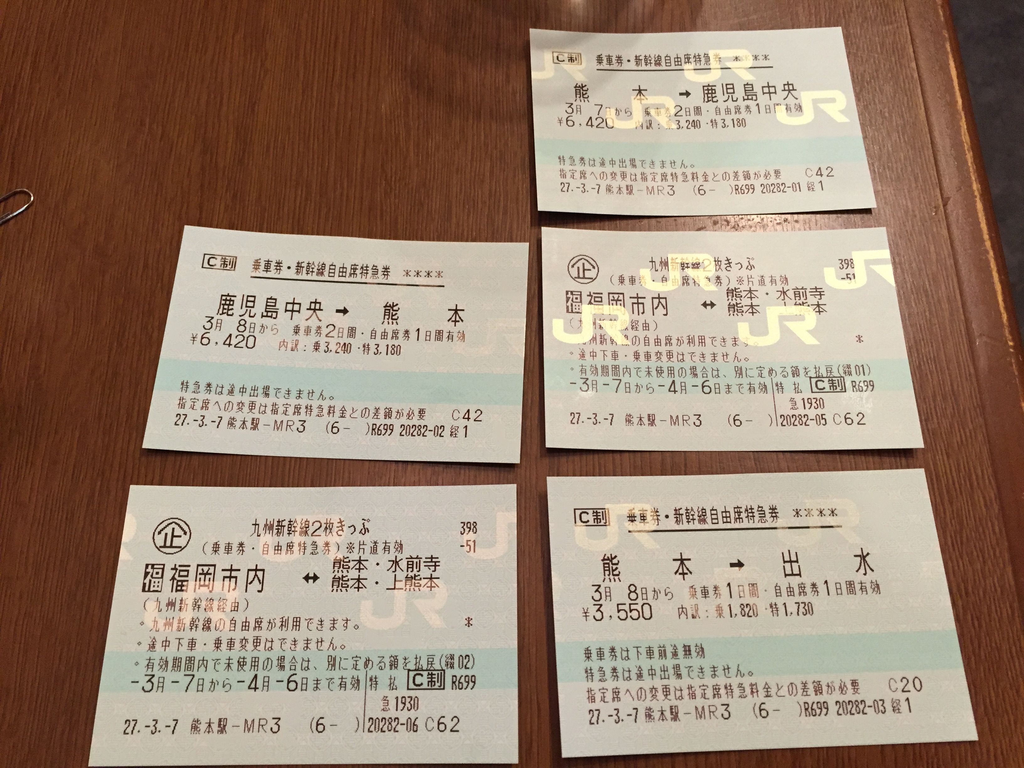 土〜月は九州新幹線三昧なわけですが、乗車券+新幹線特急券だけでもこんな感じ。